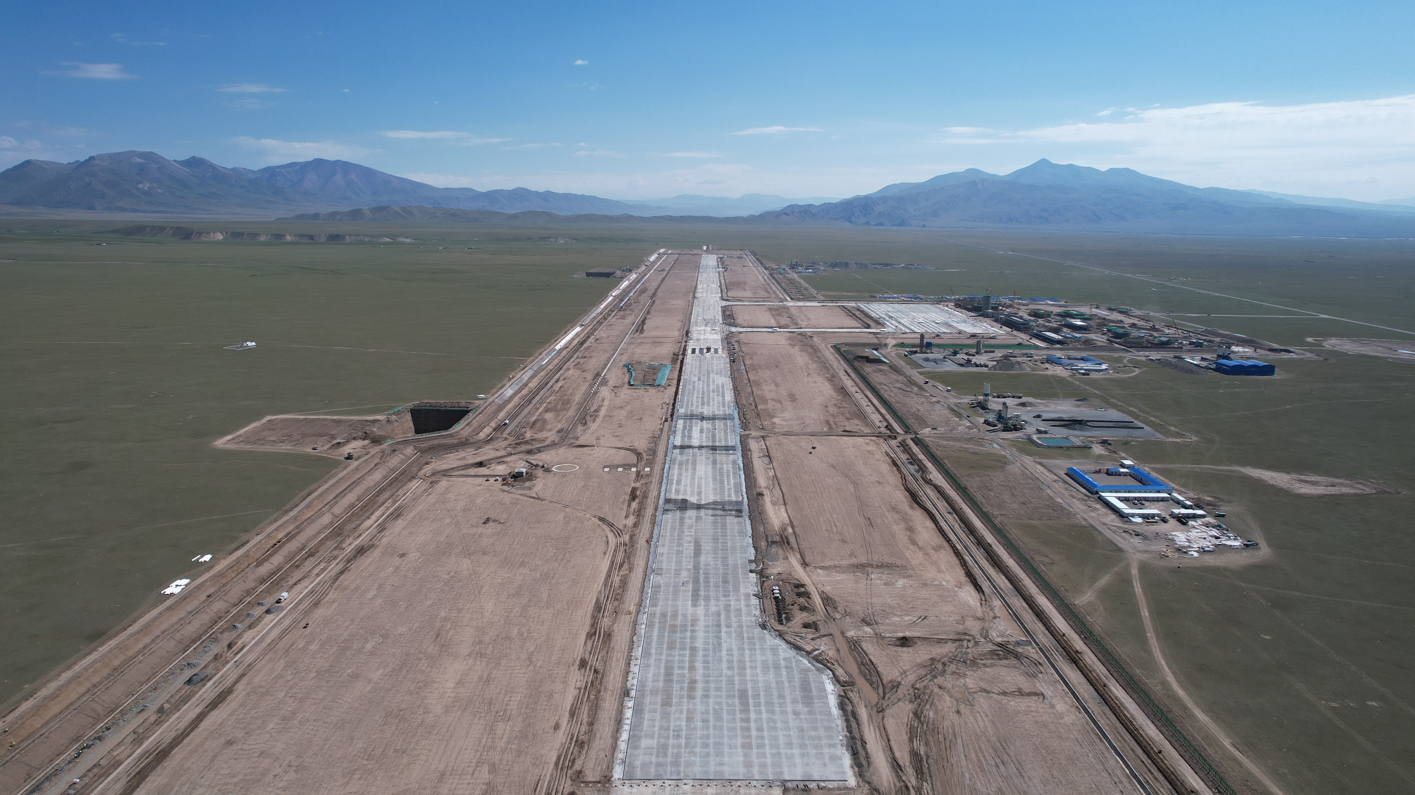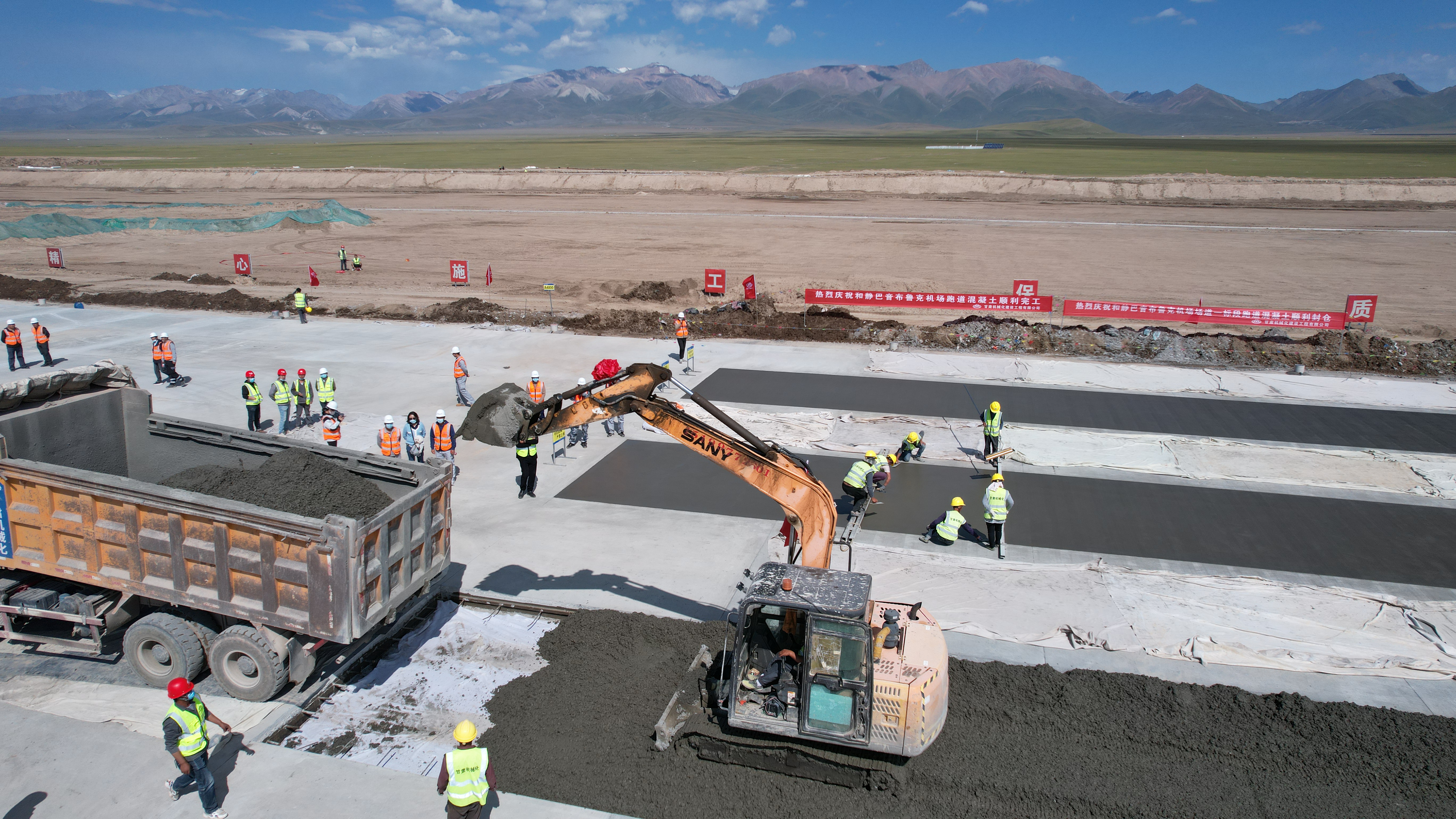 8月18日,隨著(zhù)現場(chǎng)最后一車(chē)混凝土緩緩倒入倉內,我公司承建的新疆和靜巴音布魯克機場(chǎng)跑道全線(xiàn)貫通。