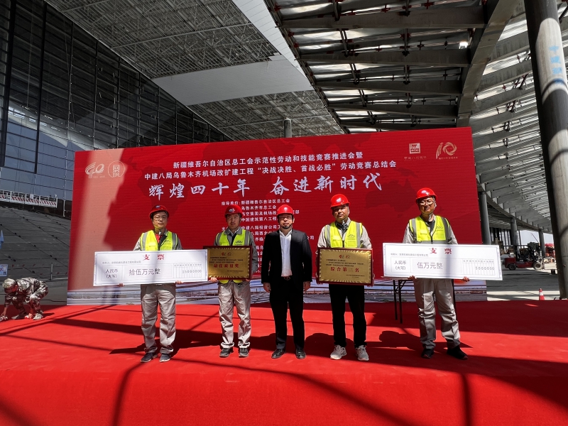 5月10日,新疆維吾爾自治區總工會(huì )示范性勞動(dòng)和技能競賽推進(jìn)會(huì )暨烏魯木齊機場(chǎng)改擴建工程“決戰決勝、首戰必勝”勞動(dòng)競賽總結會(huì )上,我司烏魯木齊機場(chǎng)改擴建工程項目部榮獲飛行區工程建設綜合第三名及最佳質(zhì)量獎;同時(shí)張振華同志榮獲“優(yōu)秀共產(chǎn)黨員”榮譽(yù)稱(chēng)號,鄧小剛同志與嚴文明同志榮獲“優(yōu)秀個(gè)人”稱(chēng)號!