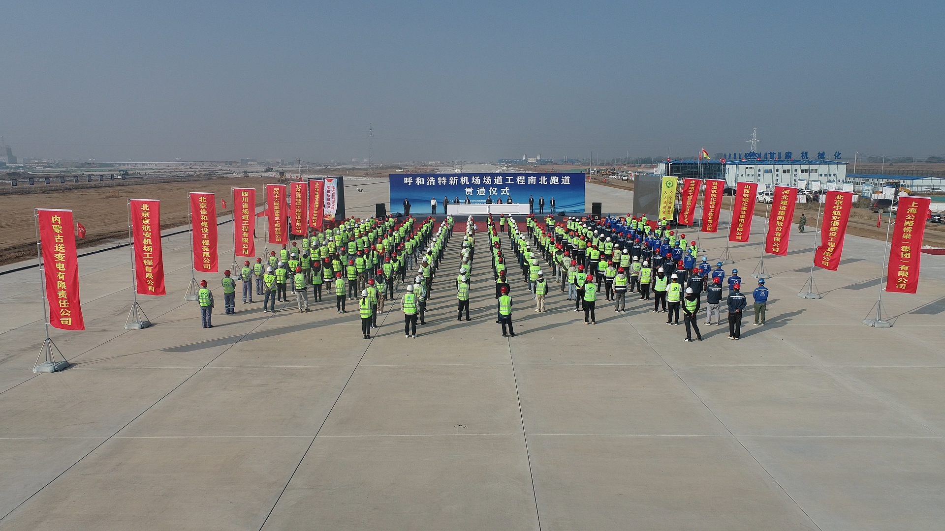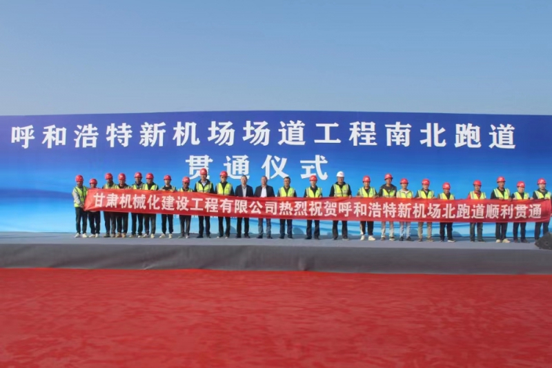 9月26日,呼和浩特新機場(chǎng)場(chǎng)道工程南北跑道貫通儀式在呼和浩特新機場(chǎng)施工現場(chǎng)舉行。公司黨委書(shū)記參加貫通儀式并代表飛行區場(chǎng)道施工單位致詞。
